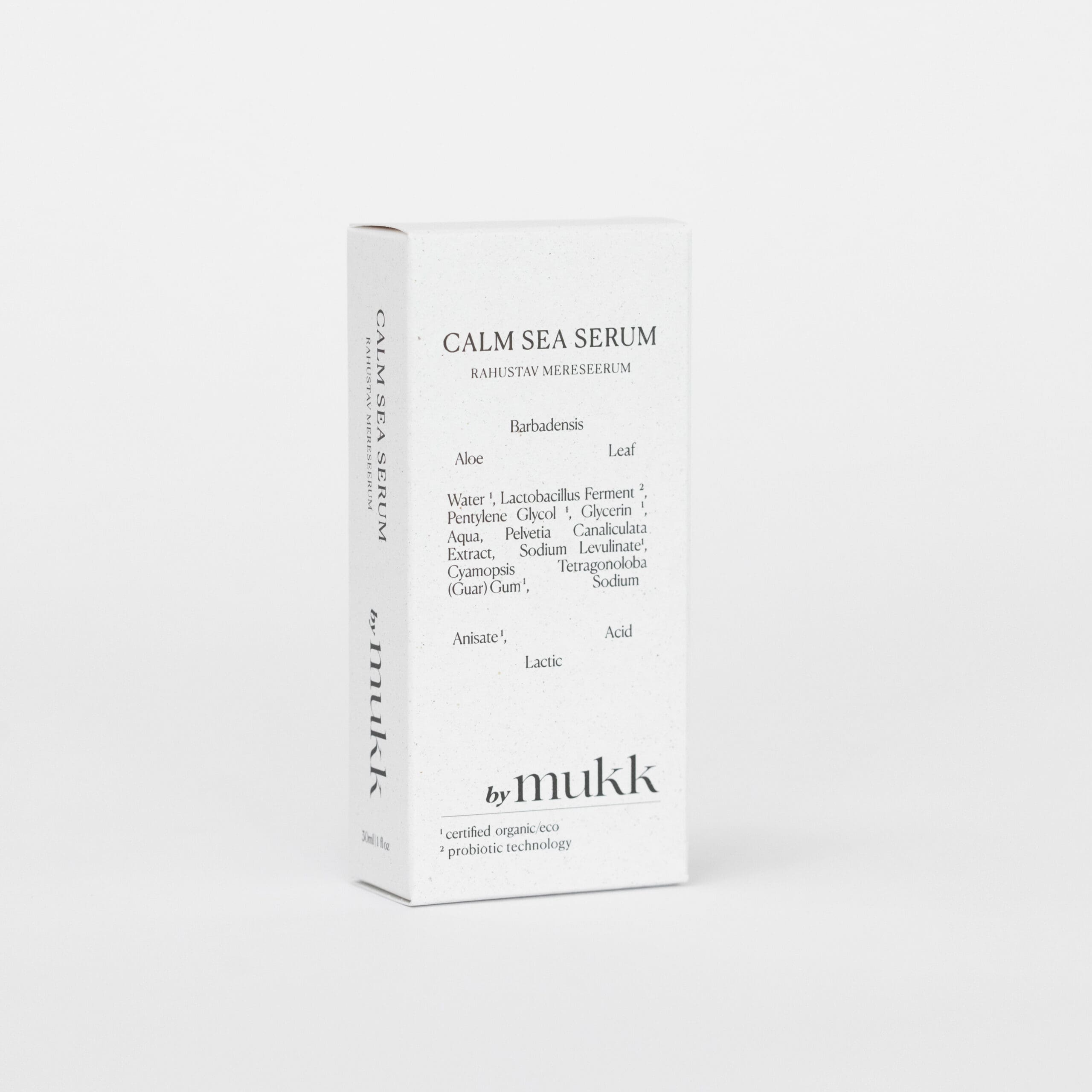 by mukk Calming Sea Serum delivers a calming and soothing effect on the inflammatory mediators, relieving skin irritation, discomfort, and stinging sensations. The formula increases the viability of skin cells, inhibits the destruction of elastin and skin ageing acceleration. Suitable for reactive and sensitive skin types or as after-sun care. Also recommended for men after shaving.