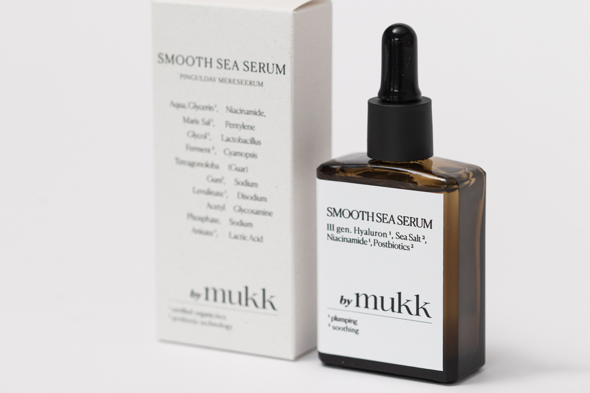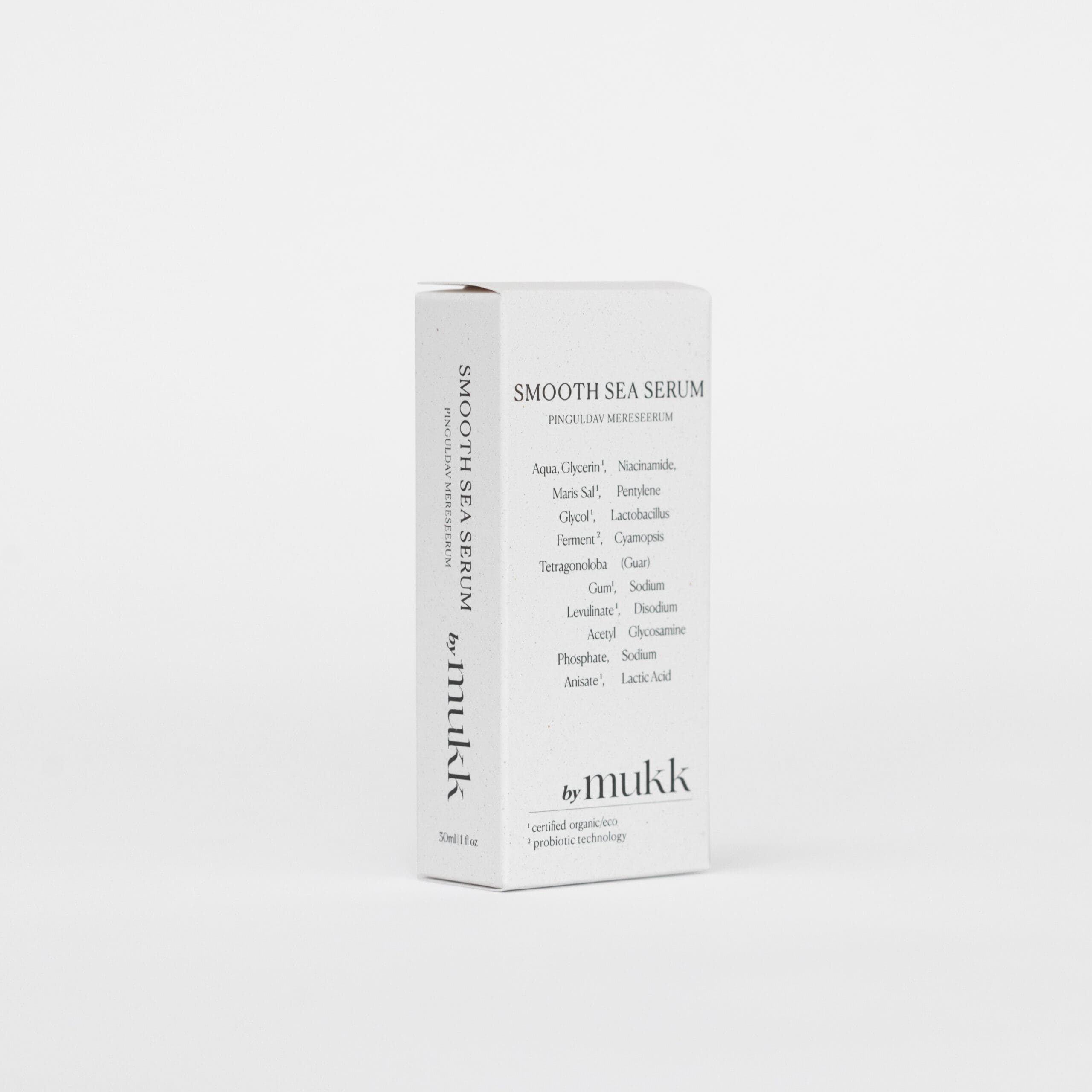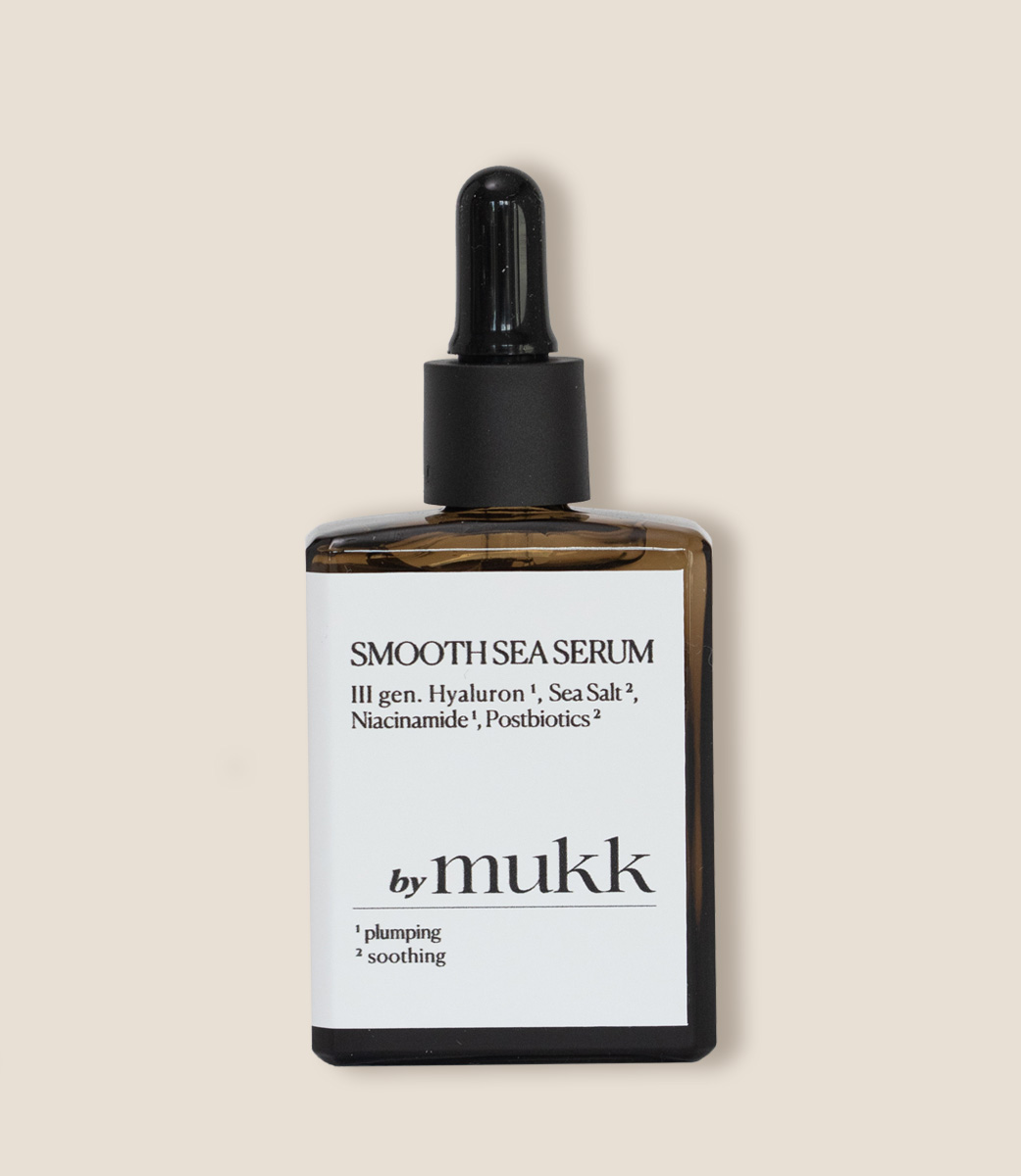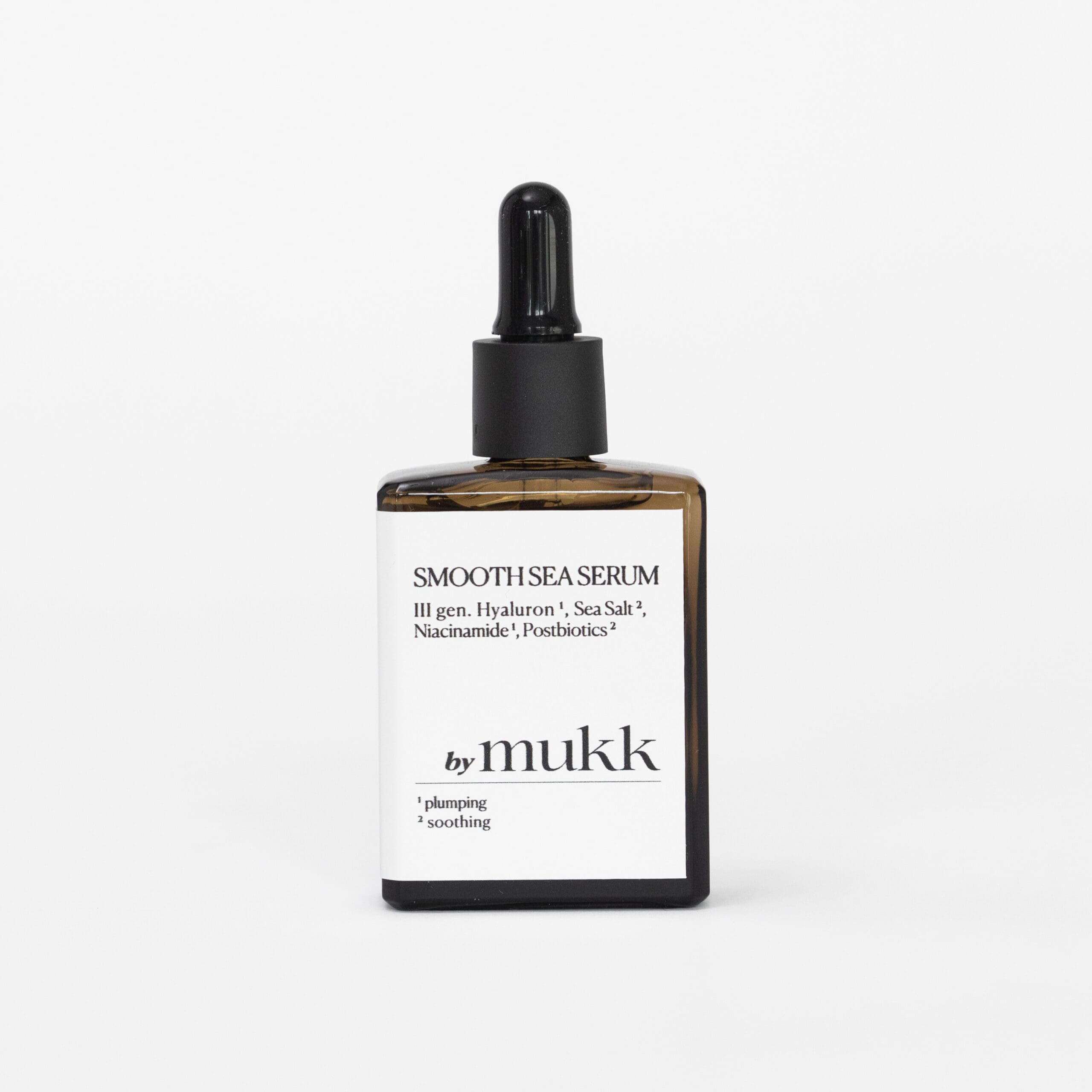 by mukk Smooth Sea Serum plumps skin, targets fine lines, and hyperpigmentation. Third-gen hyaluronic acid offers a needle-free re-plumping effect, while mineral-rich sea salt provides anti-inflammatory benefits. This serum also minimizes pores, reduces redness, treats hyperpigmentation, and includes postbiotics for balanced skin microbiota.