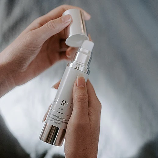 Place 1-2 pumps of Cellular Repair Moisturiser onto fingertips and smooth over the skin. Then pad onto neck and decollete.