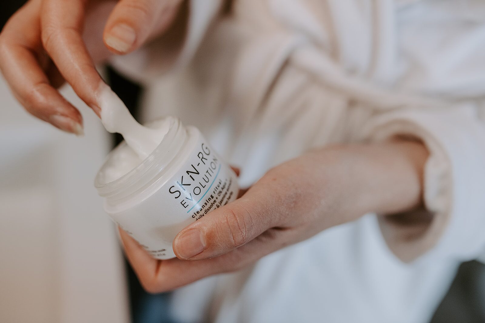 Apply a pea-size product to your fingertips and warm it up before placing it onto your skin.