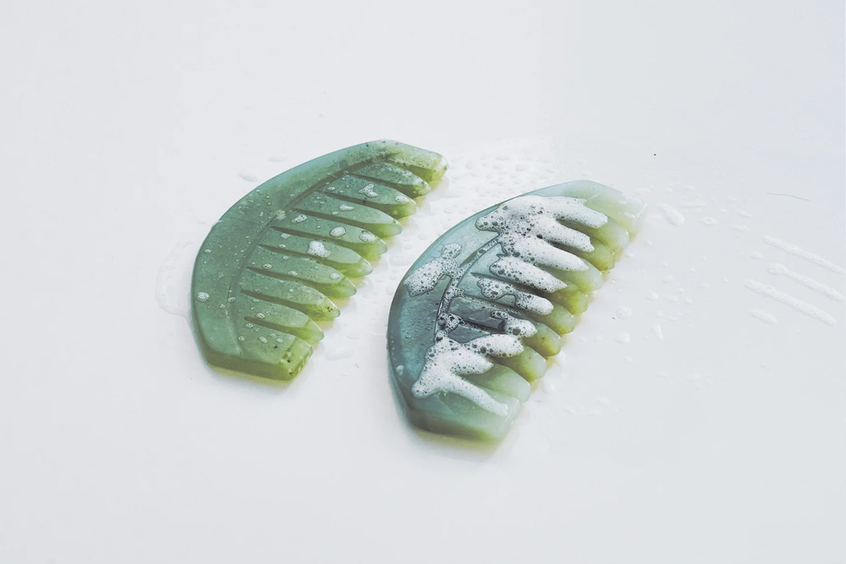 Inspired by traditional Gua Sha techniques, the comb works through a gentle scraping motion that activates the scalp and supports the natural hair growth cycle. Crafted from natural jade stone, each comb features its own unique colour variations, ranging from deep green to lighter green tones with a subtle yellow tint, making it both an effective treatment tool and a beautiful addition to your self-care routine.