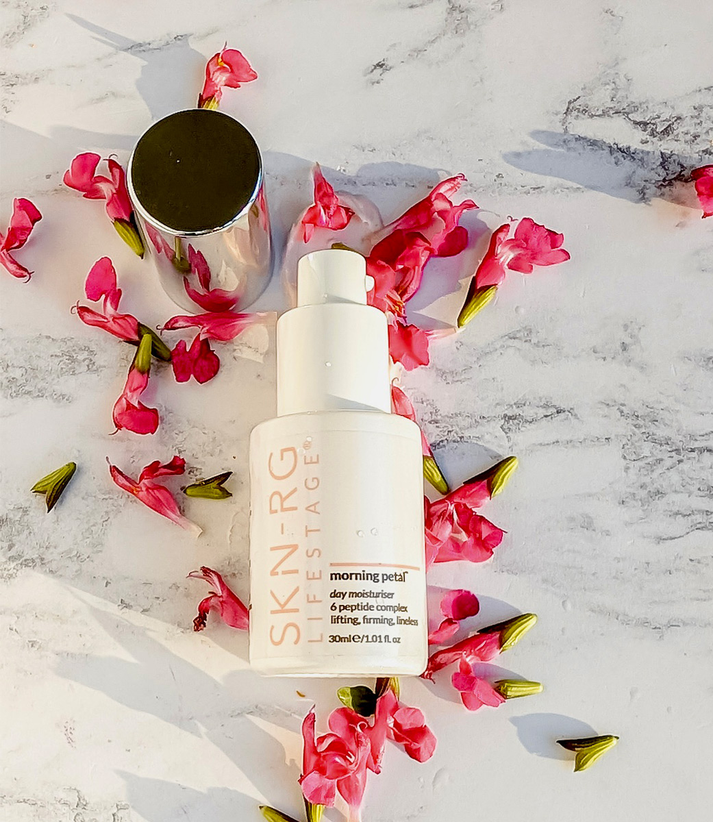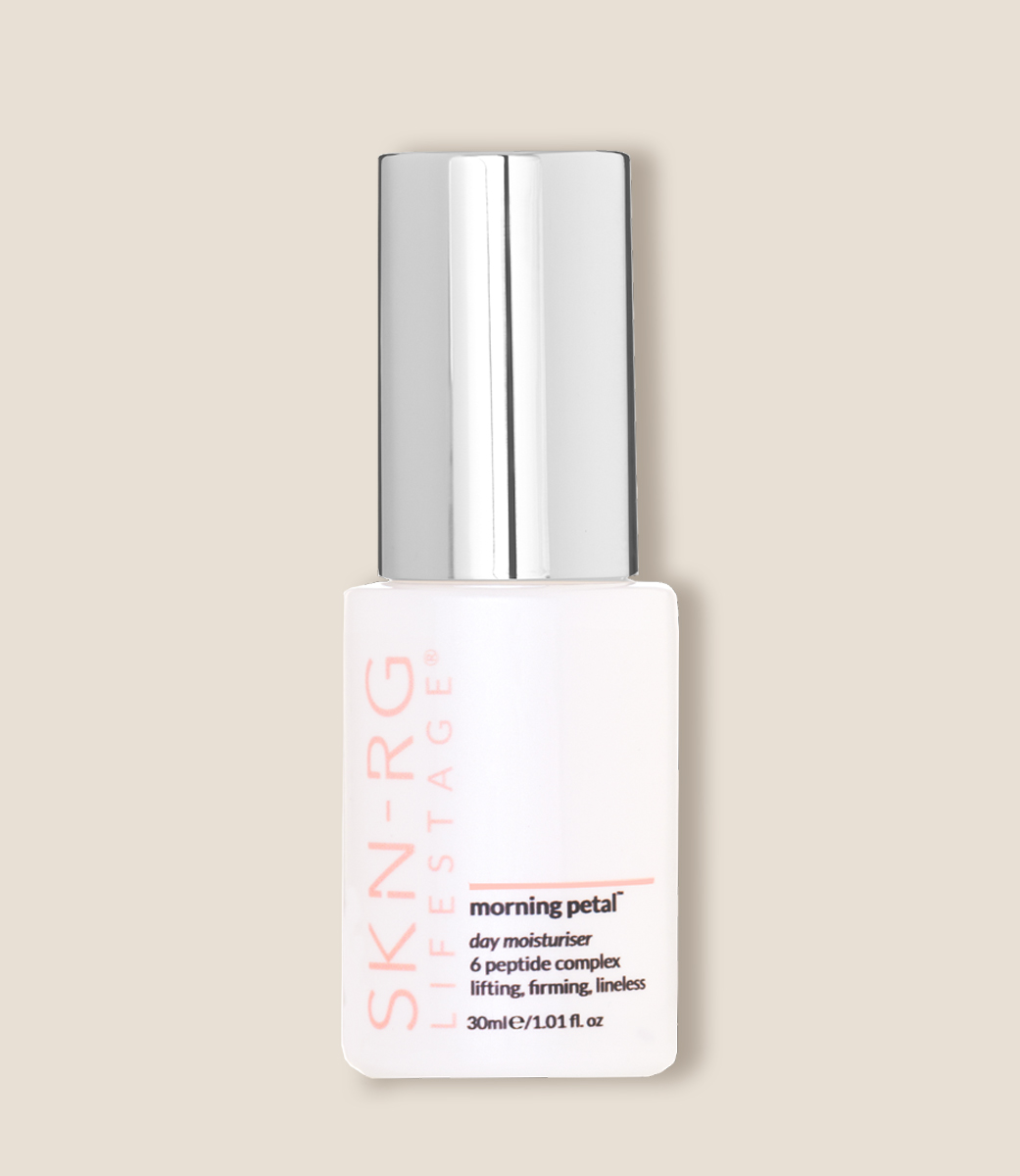 Skin-RG Morning Petal Moisturiser is a peptide-powered day moisturiser specifically designed for skin during menopause. Enriched with six potent peptides, including copper and lifting peptides, it restores volume, smooths wrinkles, and supports collagen production. Perfect for addressing necklines and uneven texture, this advanced formula delivers lasting hydration and a revitalised glow tailored to mature skin.